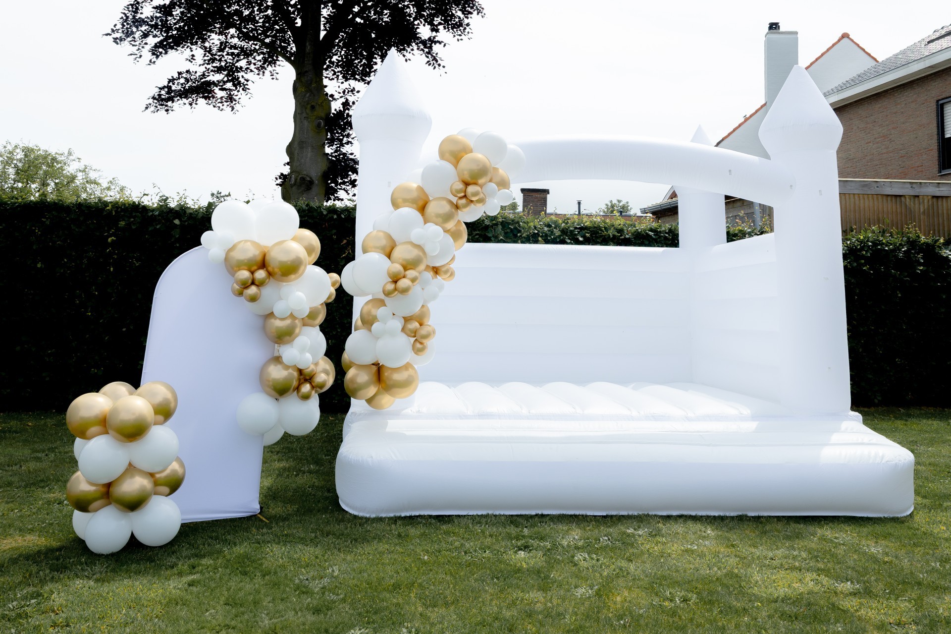 Verander jouw feest in een onvergetelijk moment met onze luxe enkele ballonboog! Deze indrukwekkende opstelling bevat één royale ballonkrans die sierlijk over een strak achtergronddoek valt van 2 meter breed en 1 meter hoog – perfect voor verjaardagen, babyshowers, verlovingen of elk stijlvol evenement.