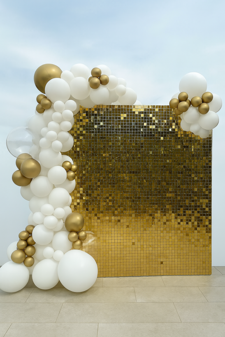 Breng extra sparkle en stijl naar jouw feest met onze Shimmerwall! Deze fonkelende wand zorgt voor een luxe uitstraling en is een echte blikvanger op elk evenement – van verjaardagen en bruiloften tot bedrijfsevents en fotoshoots.
