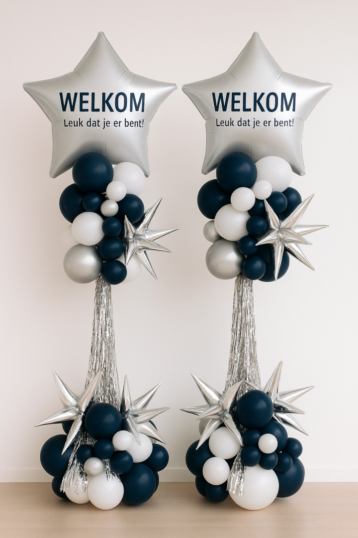 Verwelkom je gasten in stijl met deze opvallende en feestelijke ballonpilaar – afgewerkt met een glanzende folieballon bovenop en sprankelende tassels onderaan. Perfect voor een winkelopening, feest, bedrijfsreceptie of VIP-ontvangst!